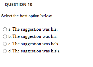 Solved QUESTION 10 Select the best option below W O a The Chegg com