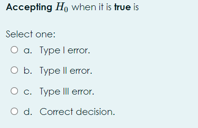 Solved Accepting H when it is true is Select one: O a Chegg com