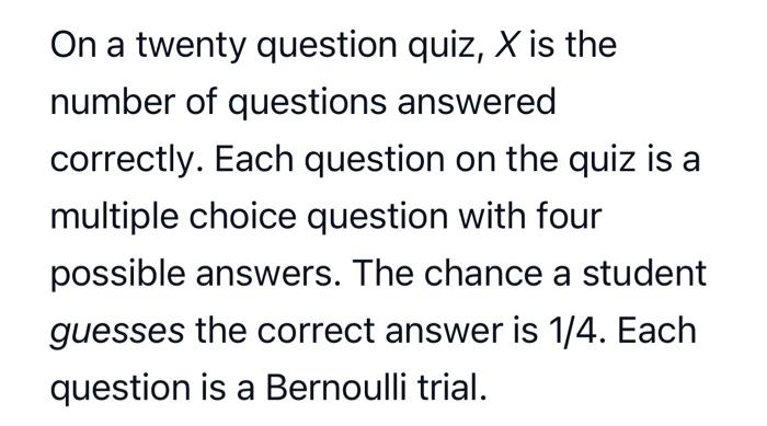 Solved On a twenty question quiz X is the number of Chegg com