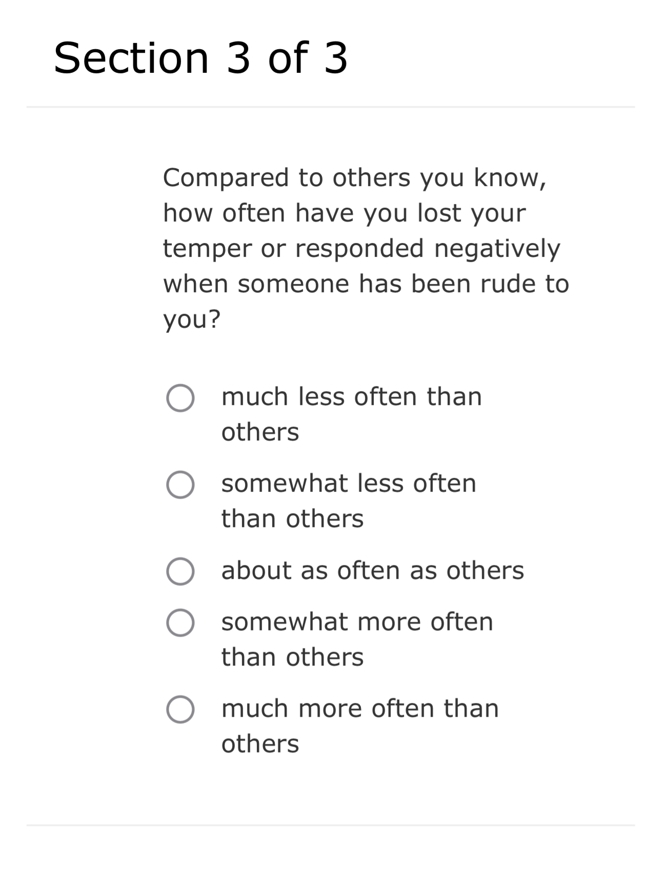 Solved Section 3 of 3Compared to others you know how often Chegg com