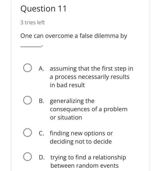 Solved Question 11 3 tries left One can overcome a false Chegg com