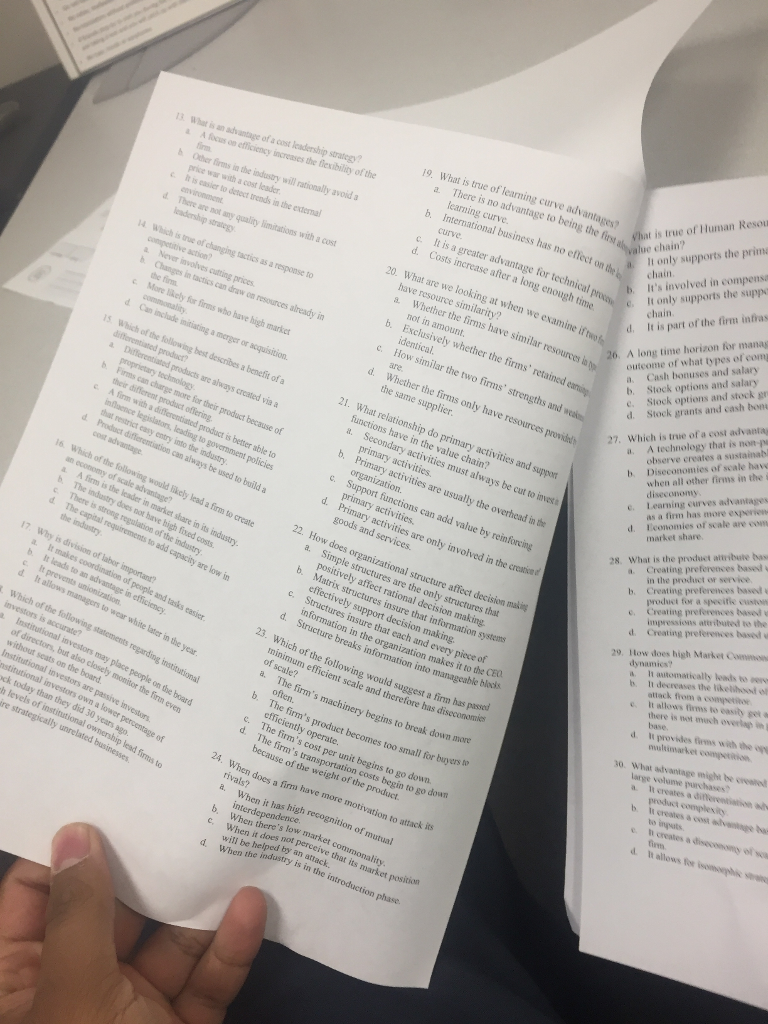 Solved a cost What is true of learning curve advantages? a Chegg com