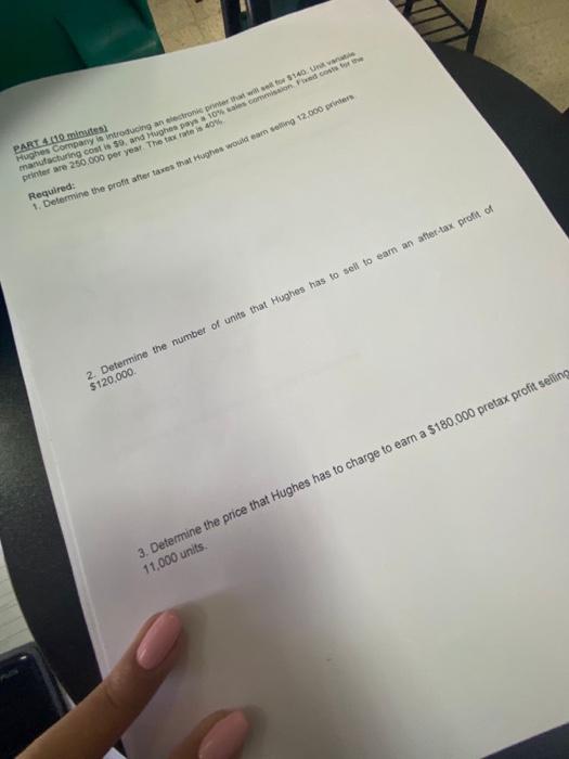 Solved PART 4 10 minutes manufacturing costs $9 and Hughes Chegg com