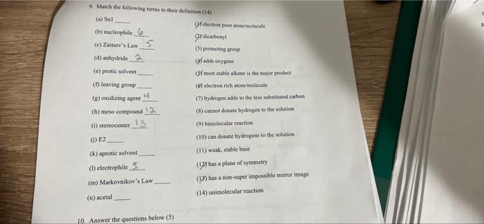 Solved 9 Match the following terms lo their definition (14) Chegg com
