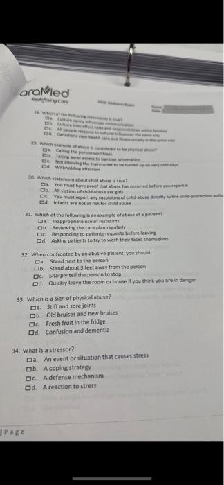 Solved araMed Redefining Care 28 Which of the following Chegg com