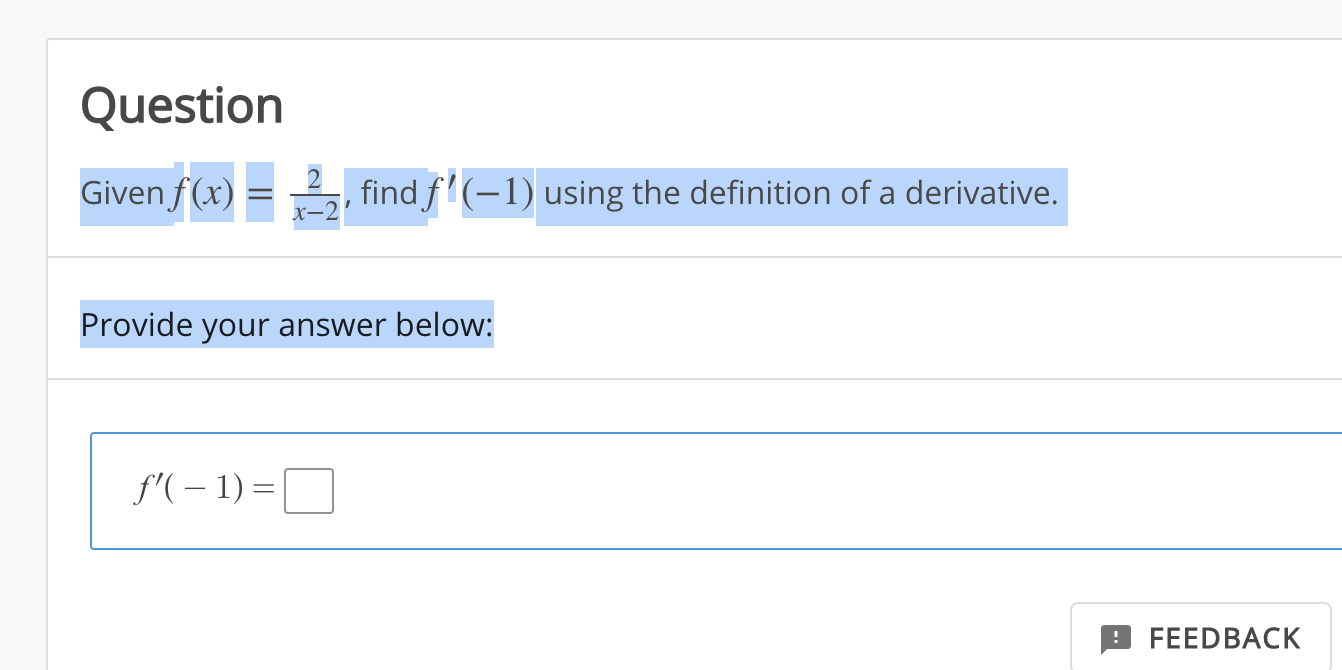 Solved Question Given f(x) find f #39 ( 1) using the definition Chegg com