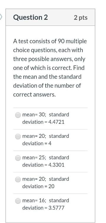 Solved Question 2 2 pts A test consists of 90 multiple Chegg com