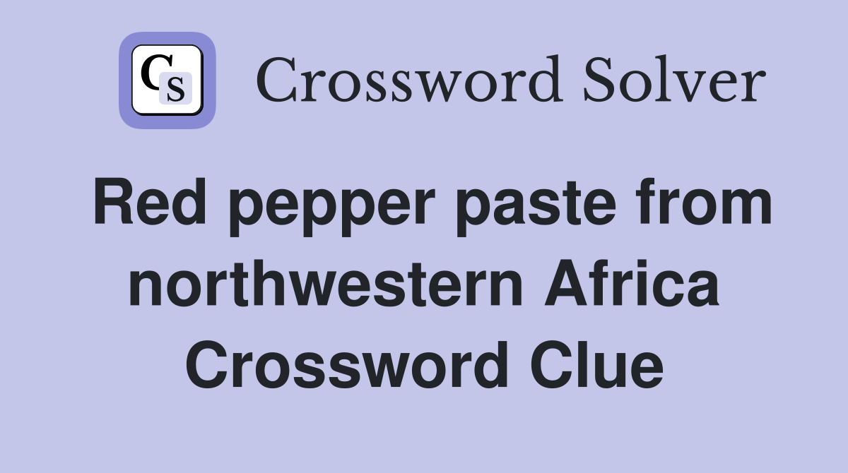 Red pepper paste from northwestern Africa Crossword Clue Answers