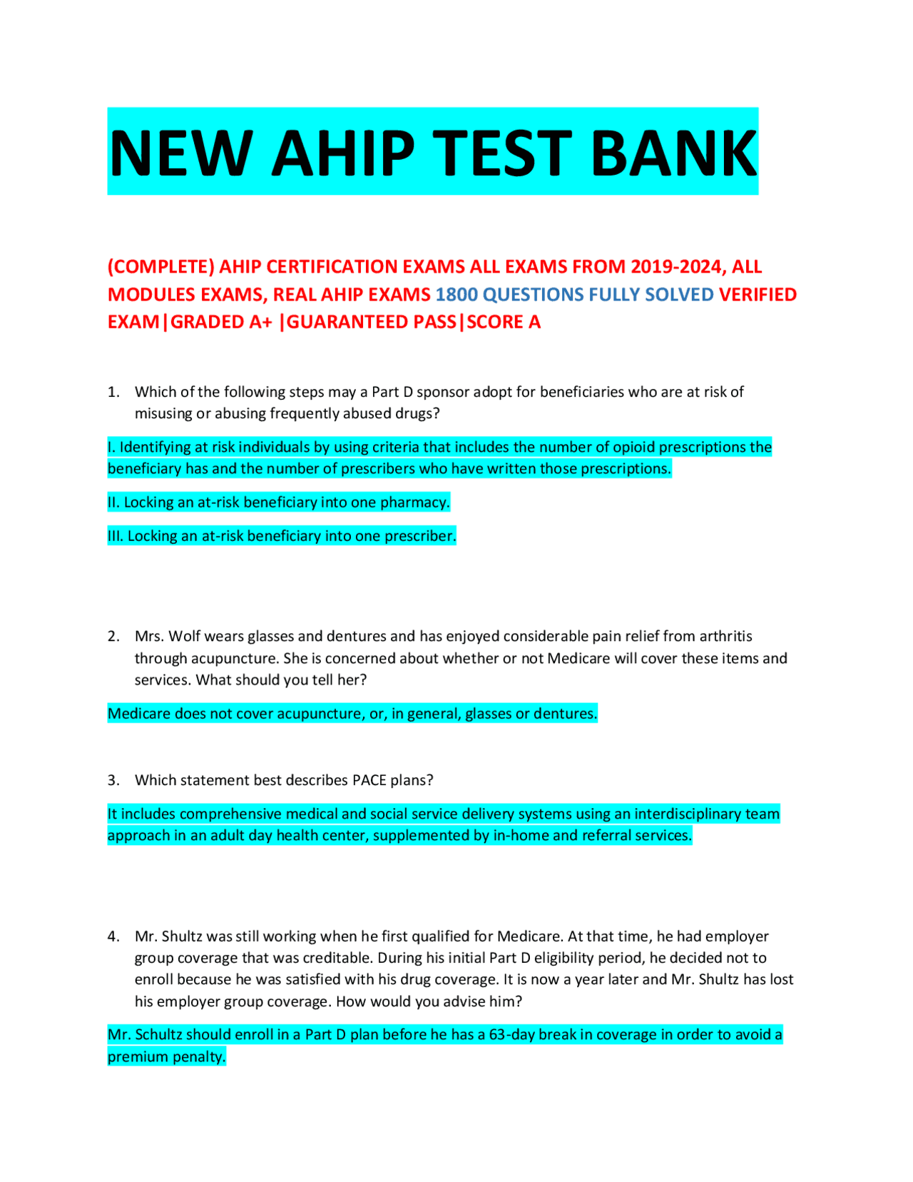 (COMPLETE) AHIP CERTIFICATION EXAMS ALL EXAMS FROM 2019 2024 ALL