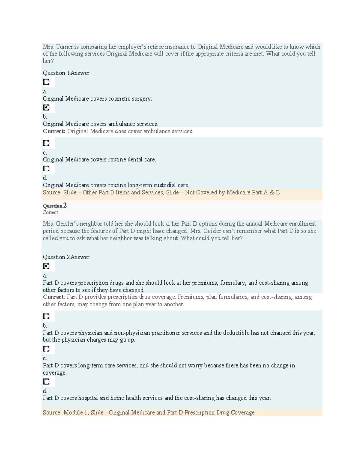 Medicare Overview and Quiz Questions for AHIP Certification Studocu