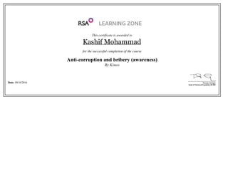 Anti Corruption Bribery Awareness certificate PDF