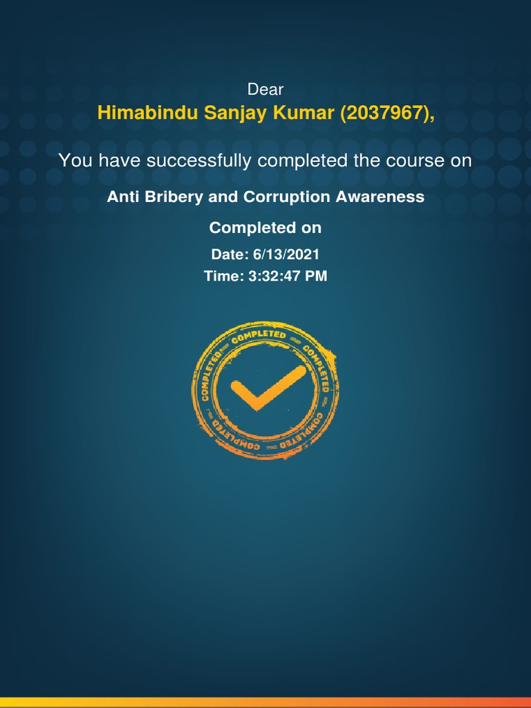 Anti Bribery and Corruption Awareness Completion Certificate PDF