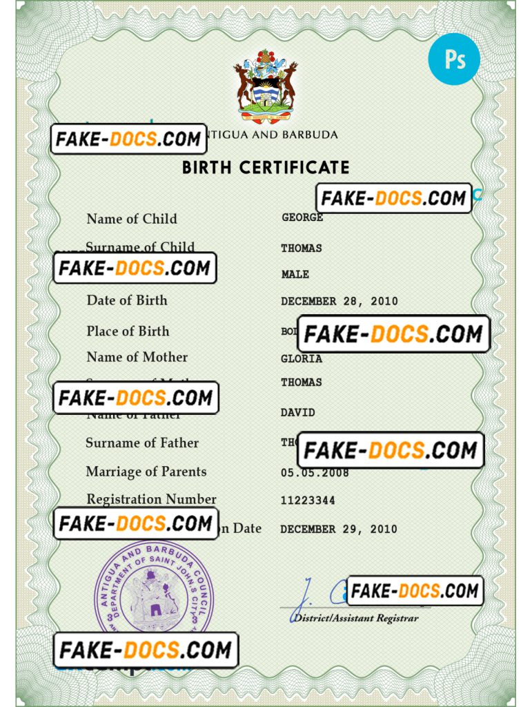 fake Antigua and Barbuda birth certificate download Word and PDF