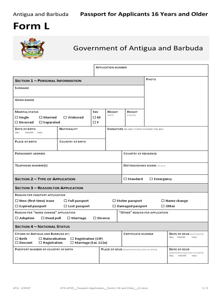 Form L: Government of Antigua and Barbuda PDF Identity Document