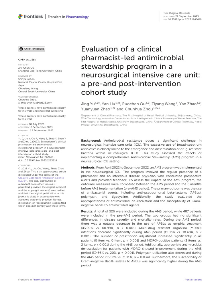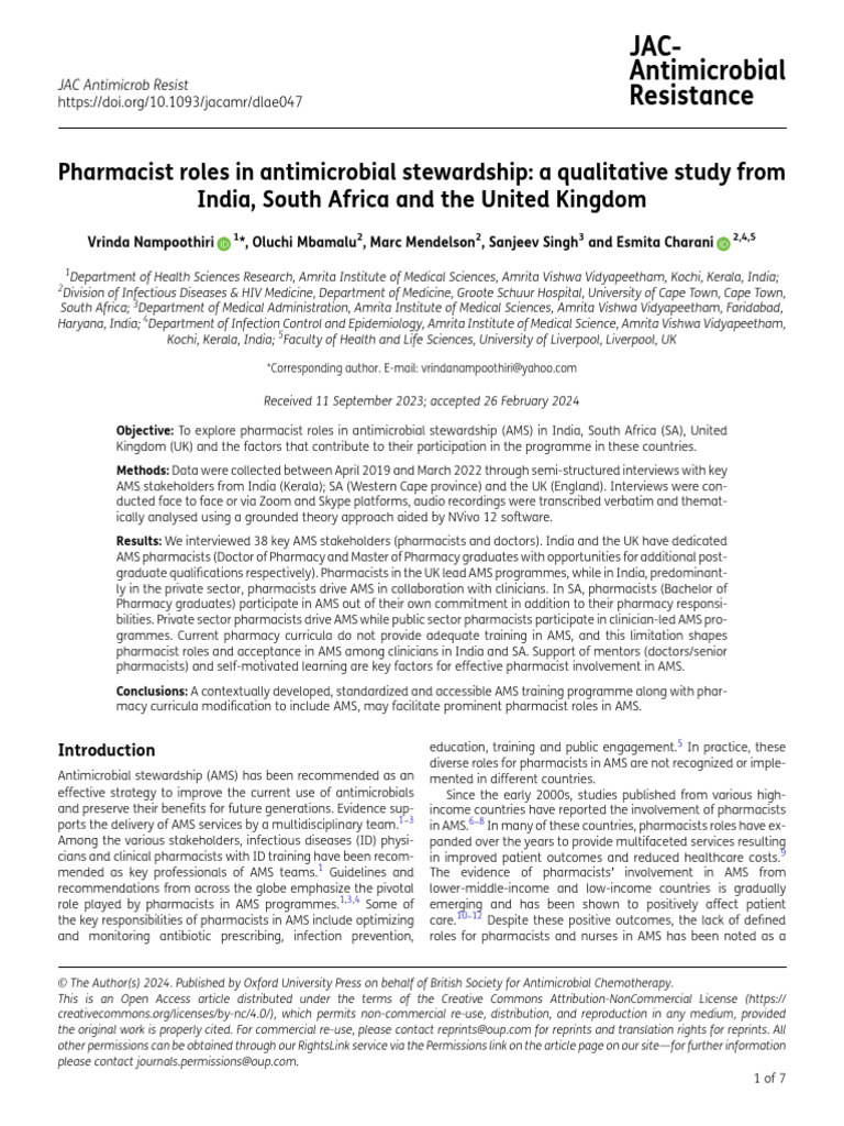 Role of pharmacist in antimicrobial stewardship Download Scientific