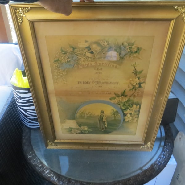 Antique Marriage Certificate Original Frame 1881 #3918440112