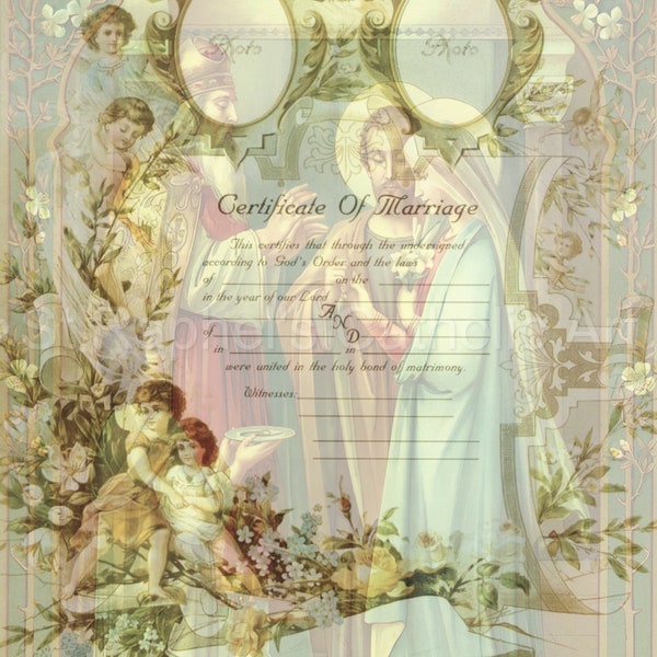 Antique Marriage Certificate with POC Angels Vintage Digital Etsy