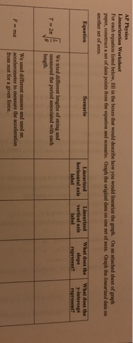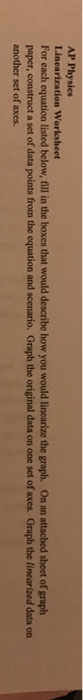 Solved AP Physics Linearization Worksheet For each equation Chegg com