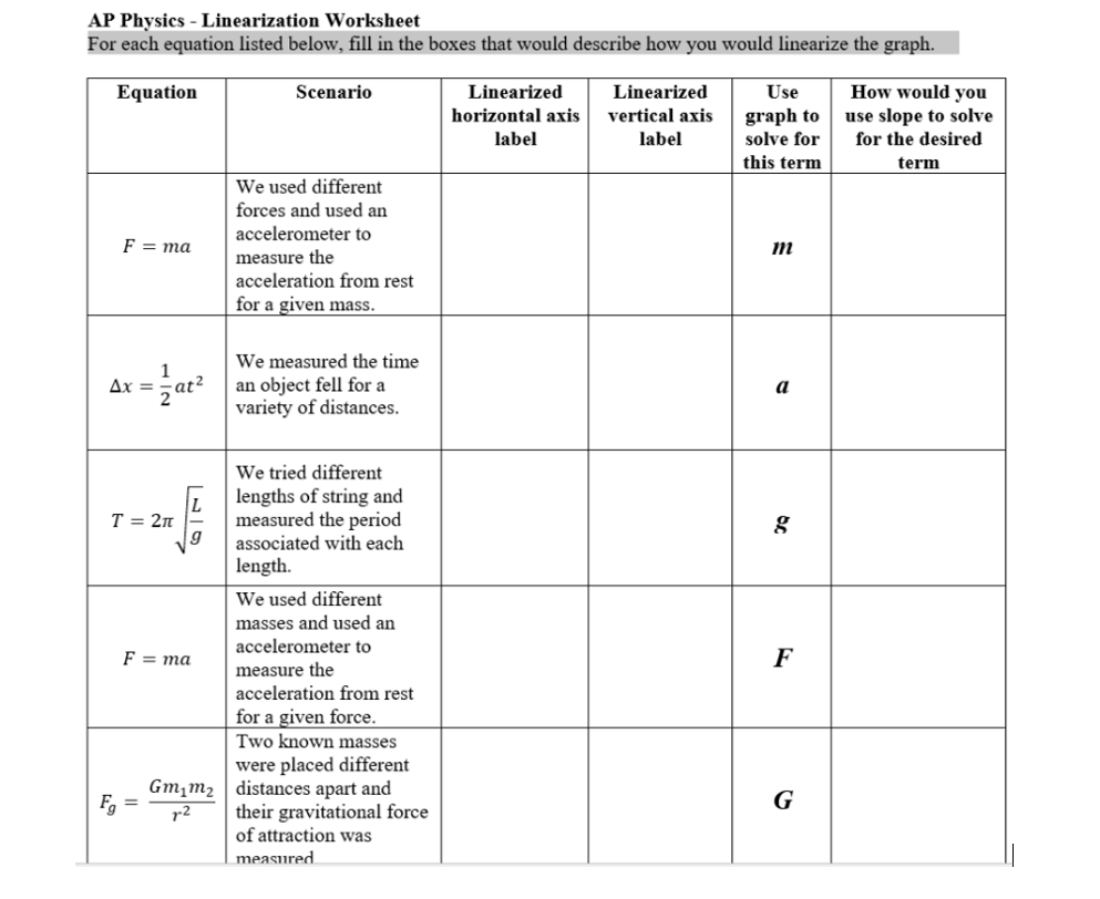 Ap Physics Linearization Worksheet Printable Word Searches