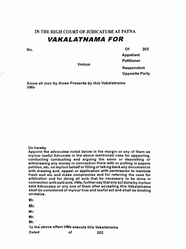 vakalatnama patna high court PDF