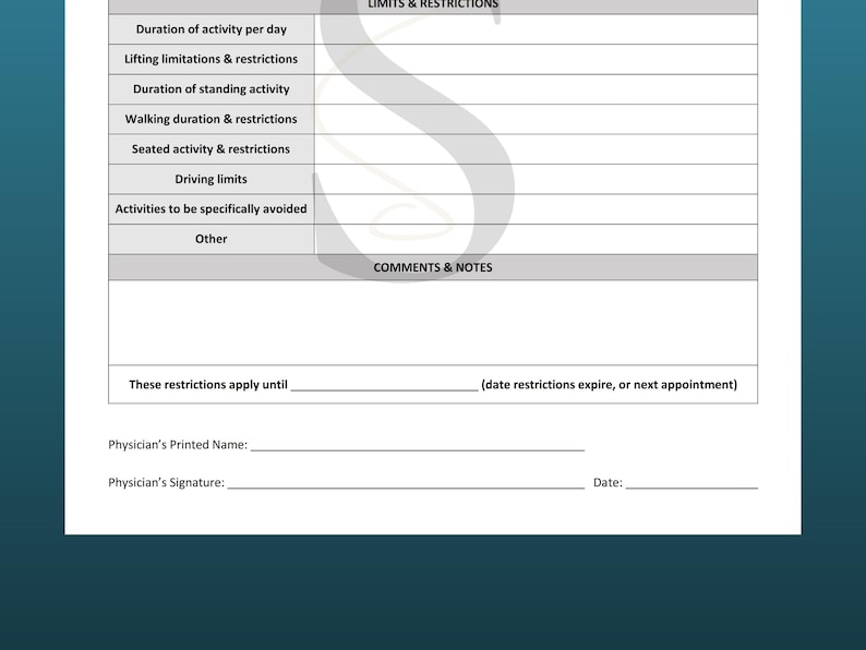 Printable Work Release Template Medical Office Forms Work Excuse