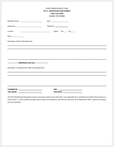 √ Free Printable Maintenance Work Order Template