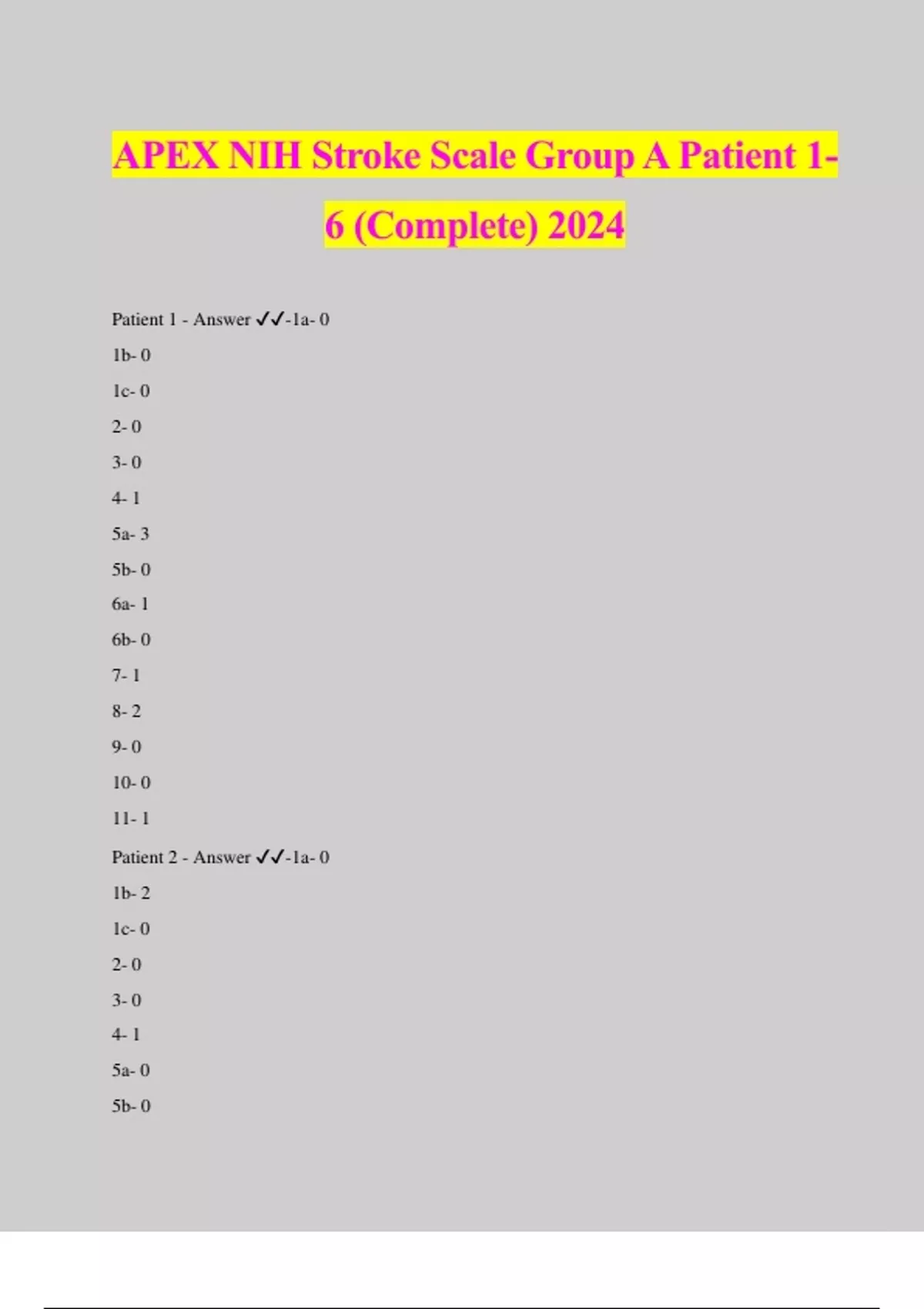 APEX NIH STROKE SCALE GROUP B PATIENT 1 6 /Solved 100% Correct APEX