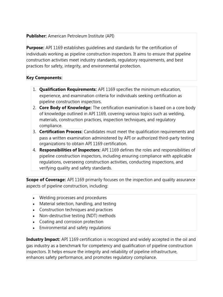 API 1169 Pipeline Inspector Certification Program