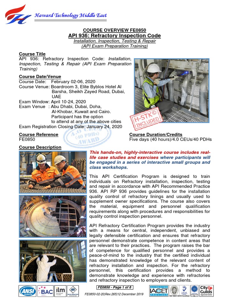 Haward Technology Middle East: API 936: Refractory Inspection Code