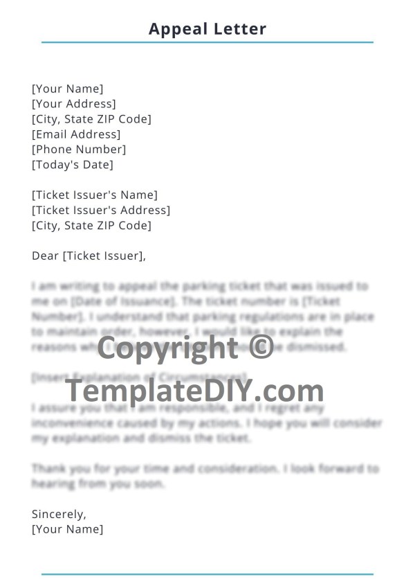 Parking Ticket Appeal Letter Sample Template in Pdf Word Lettering