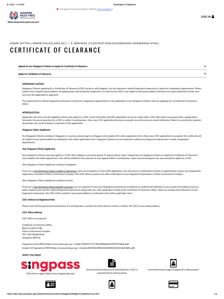 Guide: Get Certificate of Clearance Online in Singapore Ministry
