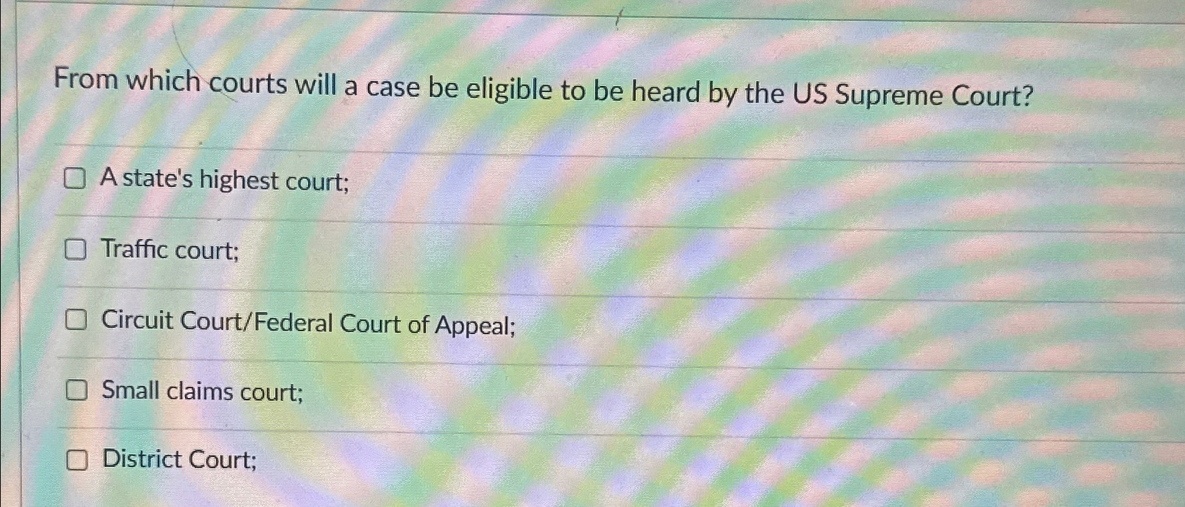 Solved From which courts will a case be eligible to be heard Chegg com