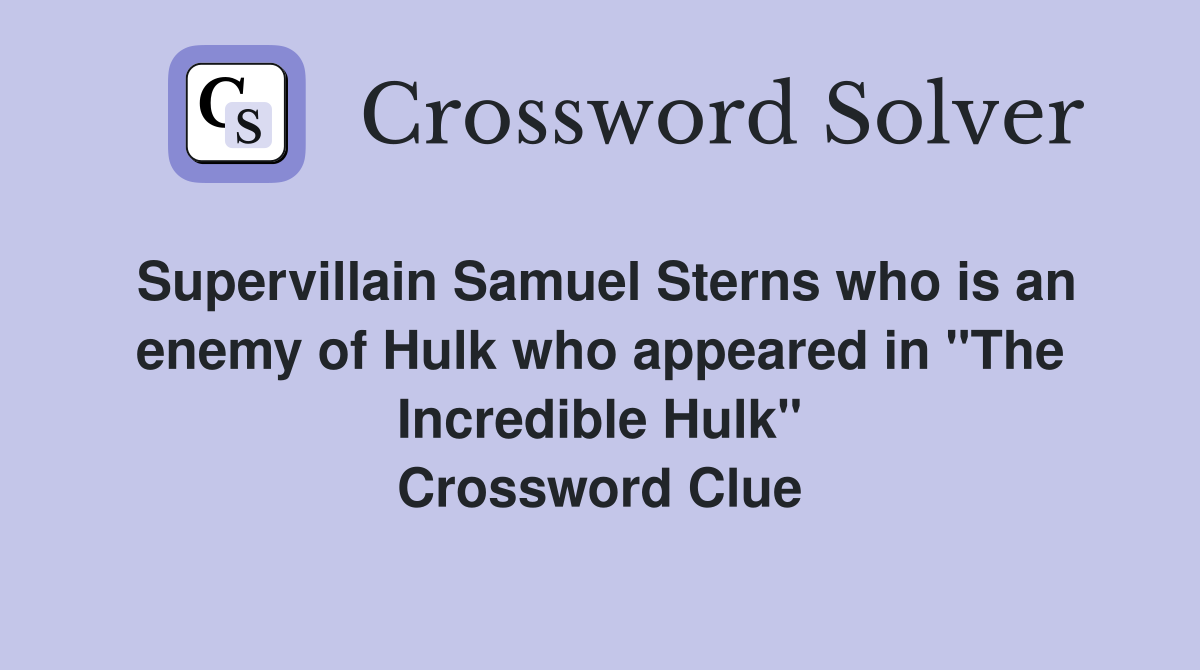 Supervillain Samuel Sterns who is an enemy of Hulk who appeared in quot The