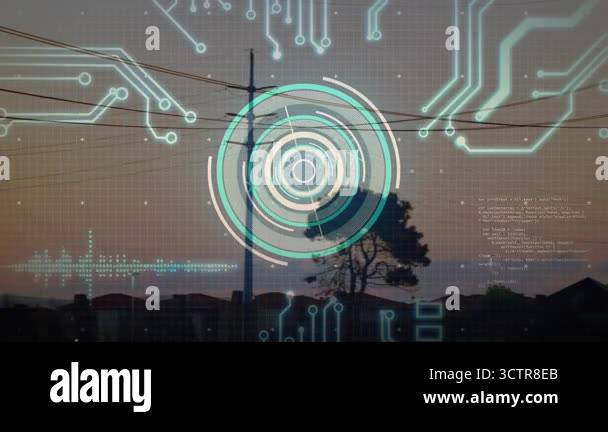 Digital HUD graphic appearing initiating circuit overlay and grid