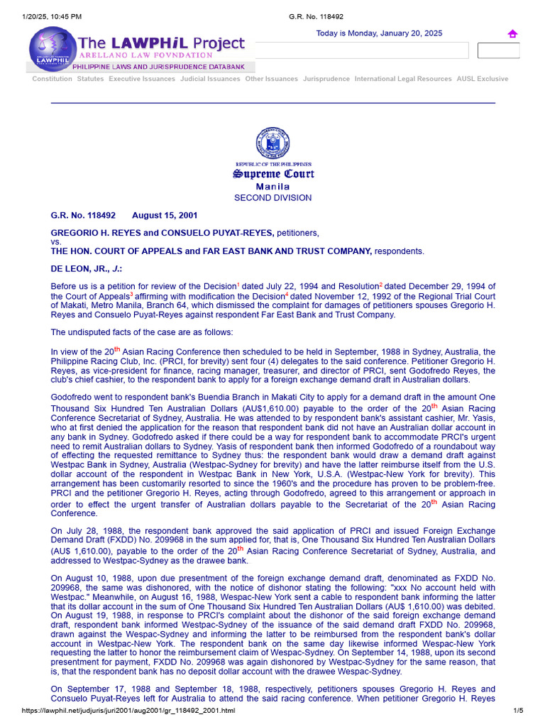5 Reyes vs CA G R No 118492 PDF Banks Appellate Court