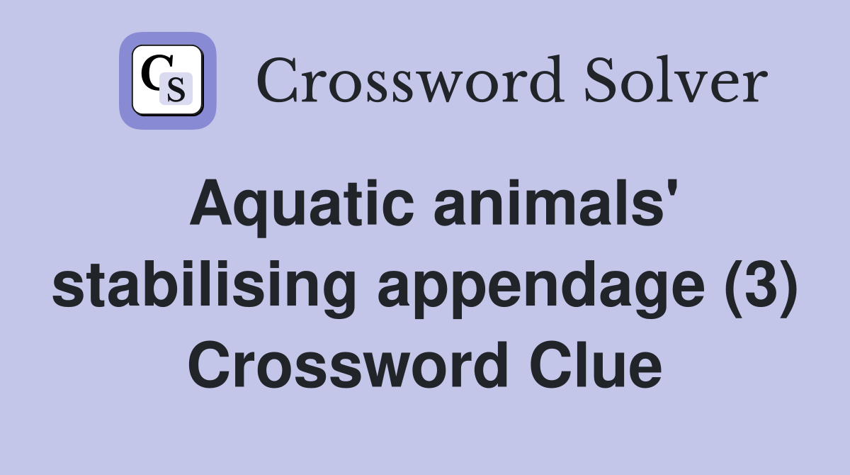 Aquatic animals #39 stabilising appendage (3) Crossword Clue Answers