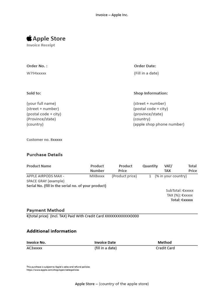 Apple Invoice English PDF Invoice Payments