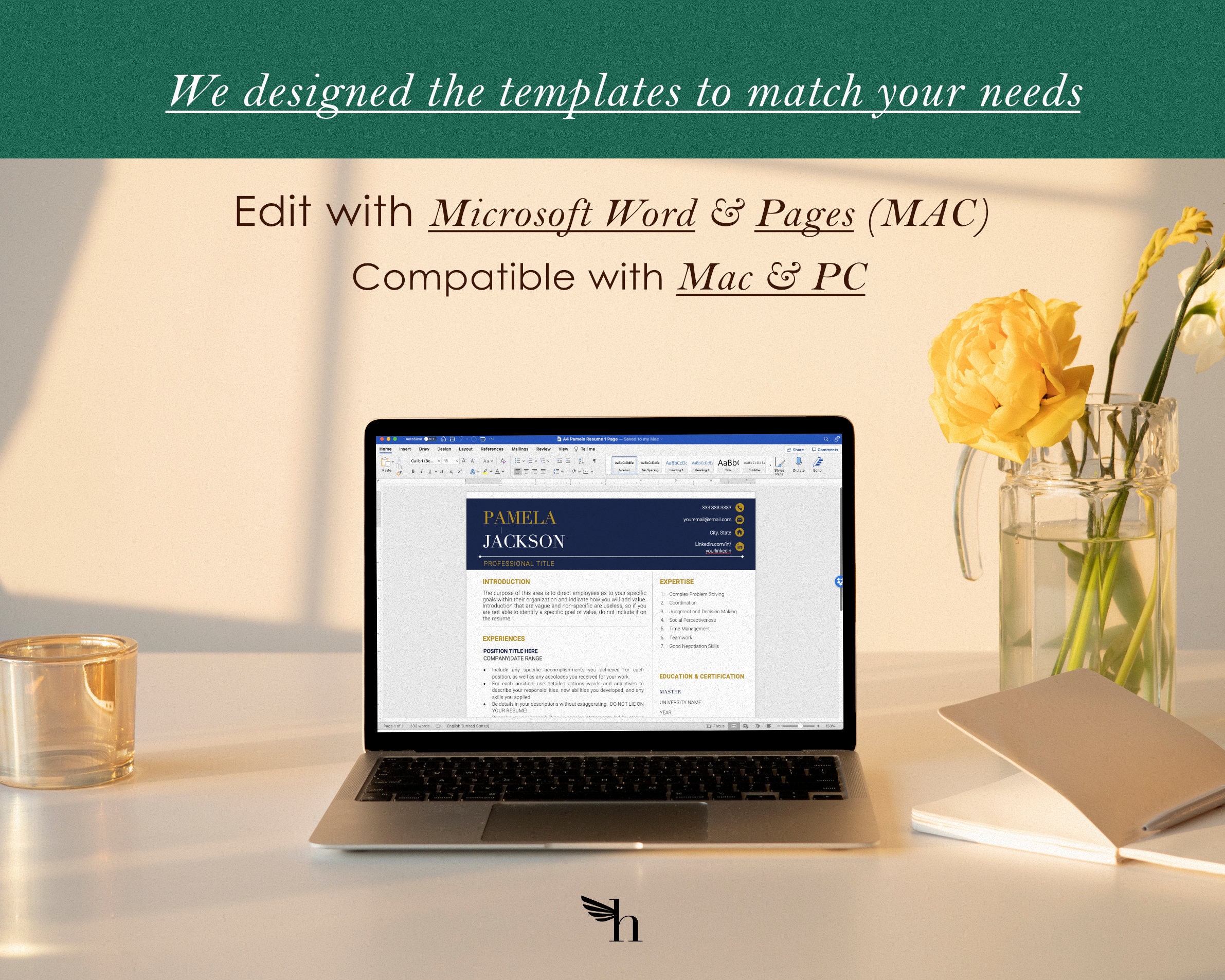 Microsoft word and apple pages resume template design Artofit