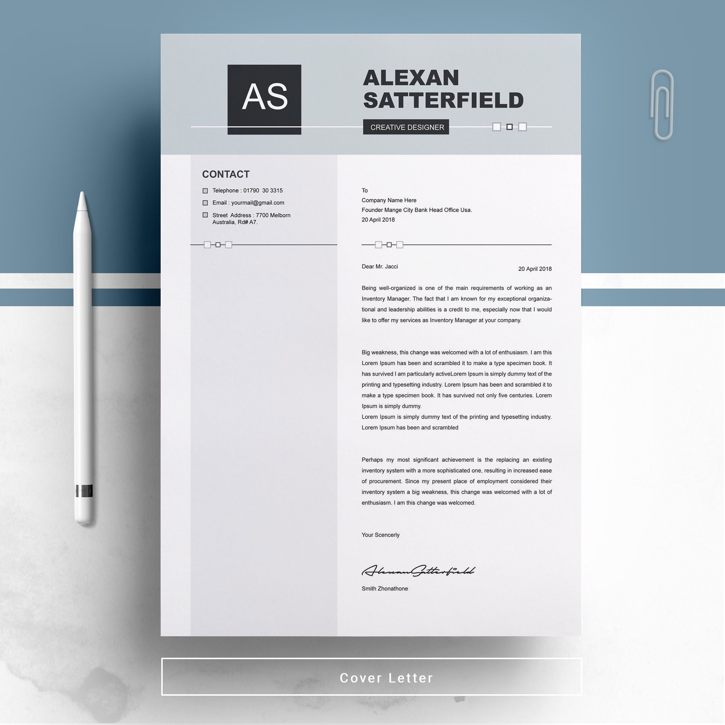 Apple Pages Modern Resume Template CV Template Cover Letter References