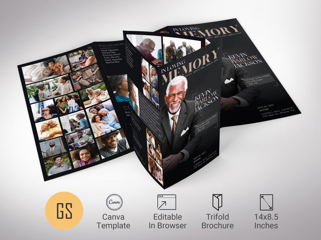 Black Funeral Program Template Canva Trifold Magazine Style Obituary
