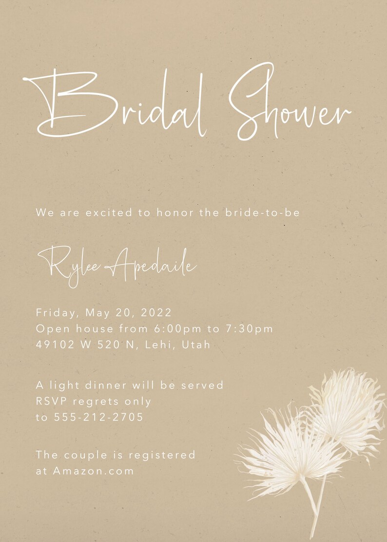 Rustic Bridal Shower Invitation Template Minimalist Design Etsy UK