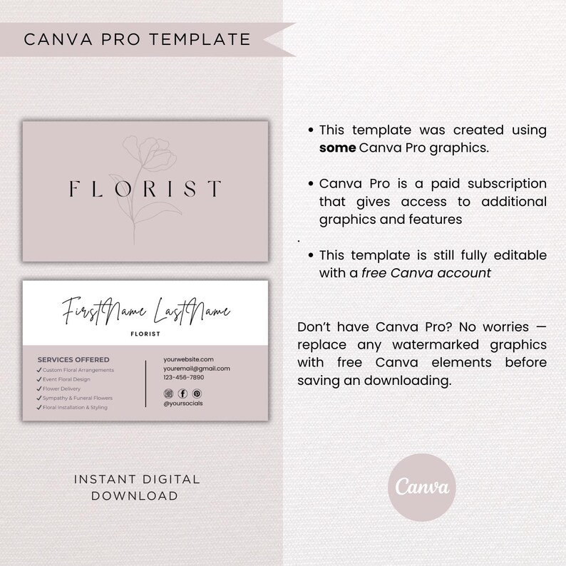 Floral Business Card Template Modern Florist Editable Canva Design