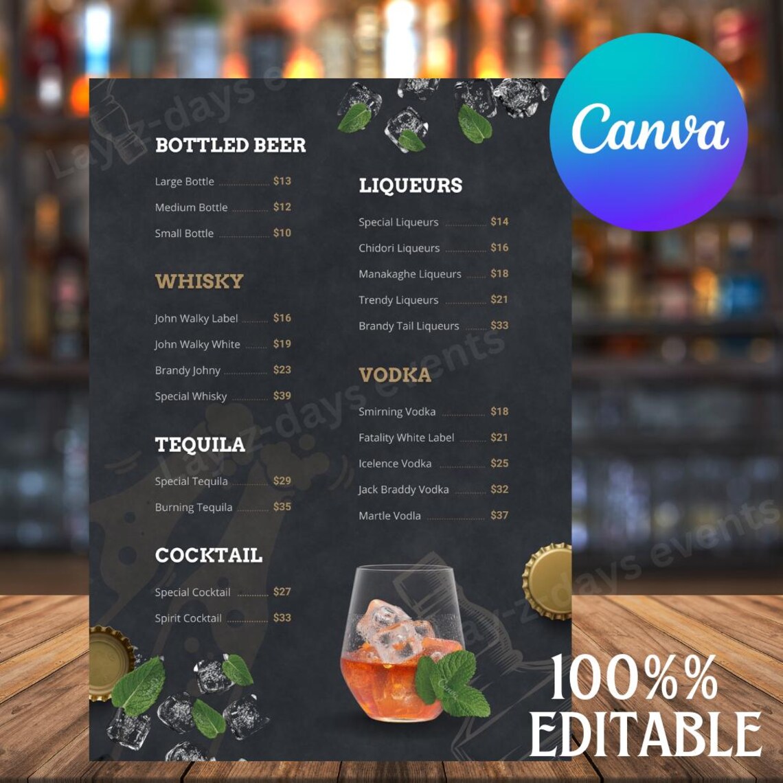 Editable Cocktail Menu Template A4 Canva Design (digital Download) Etsy