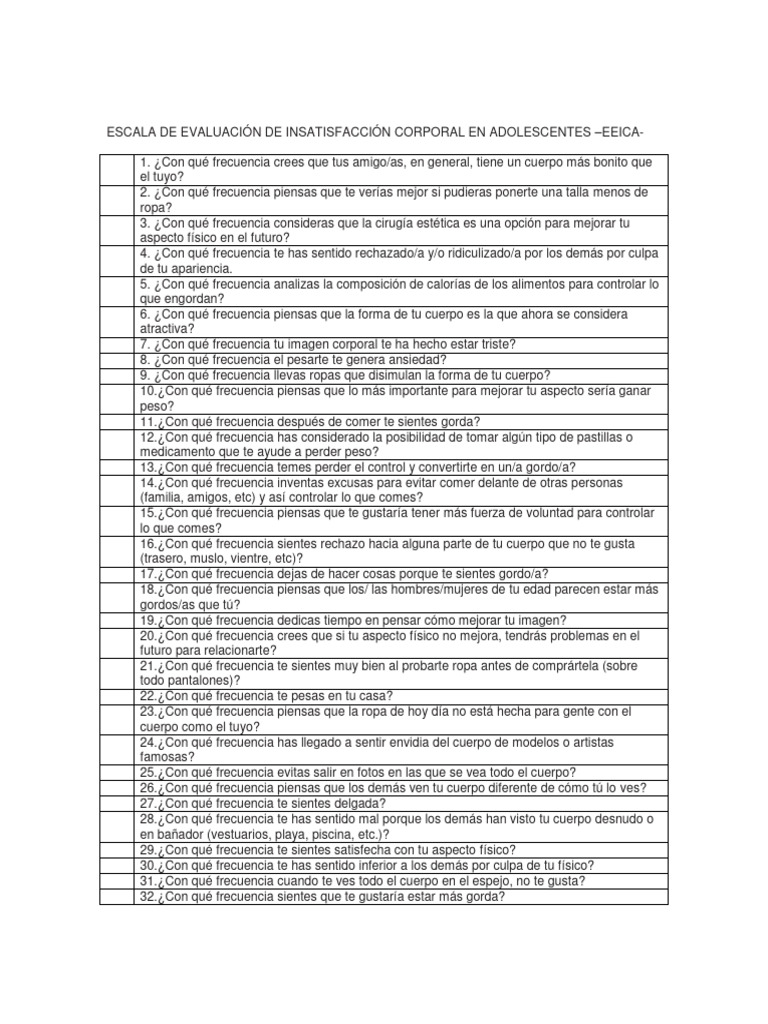 Escala de Evaluación de Insatisfacción Corporal en Adolescentes PDF