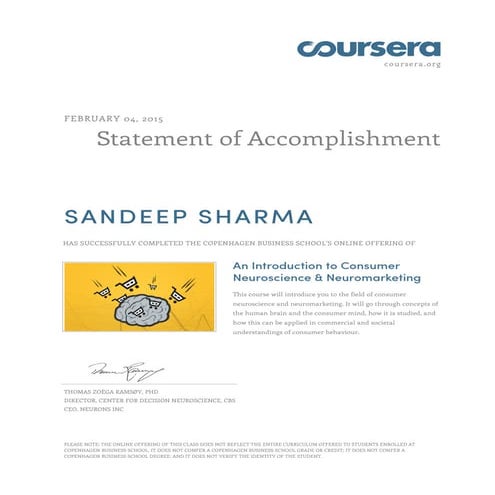 Consumer Neuroscience Neuromarketing Certificate PDF Business