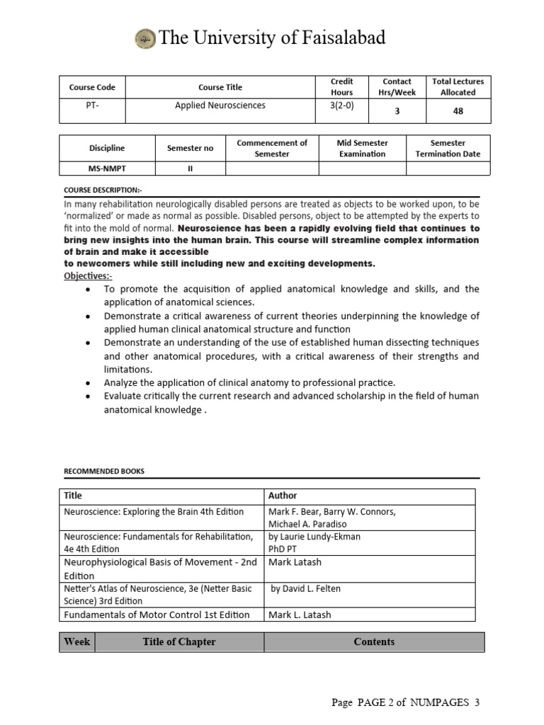 Graduate Certificate in Applied Neuroscience Christian Heritage College