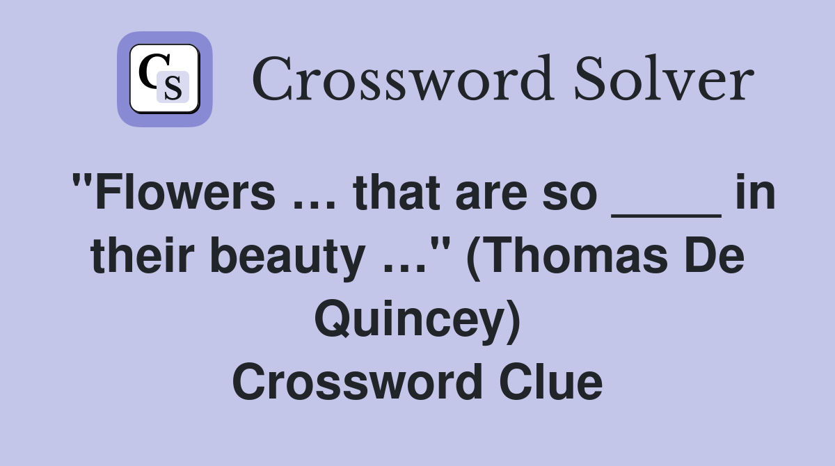 quot Flowers that are so in their beauty quot (Thomas De Quincey