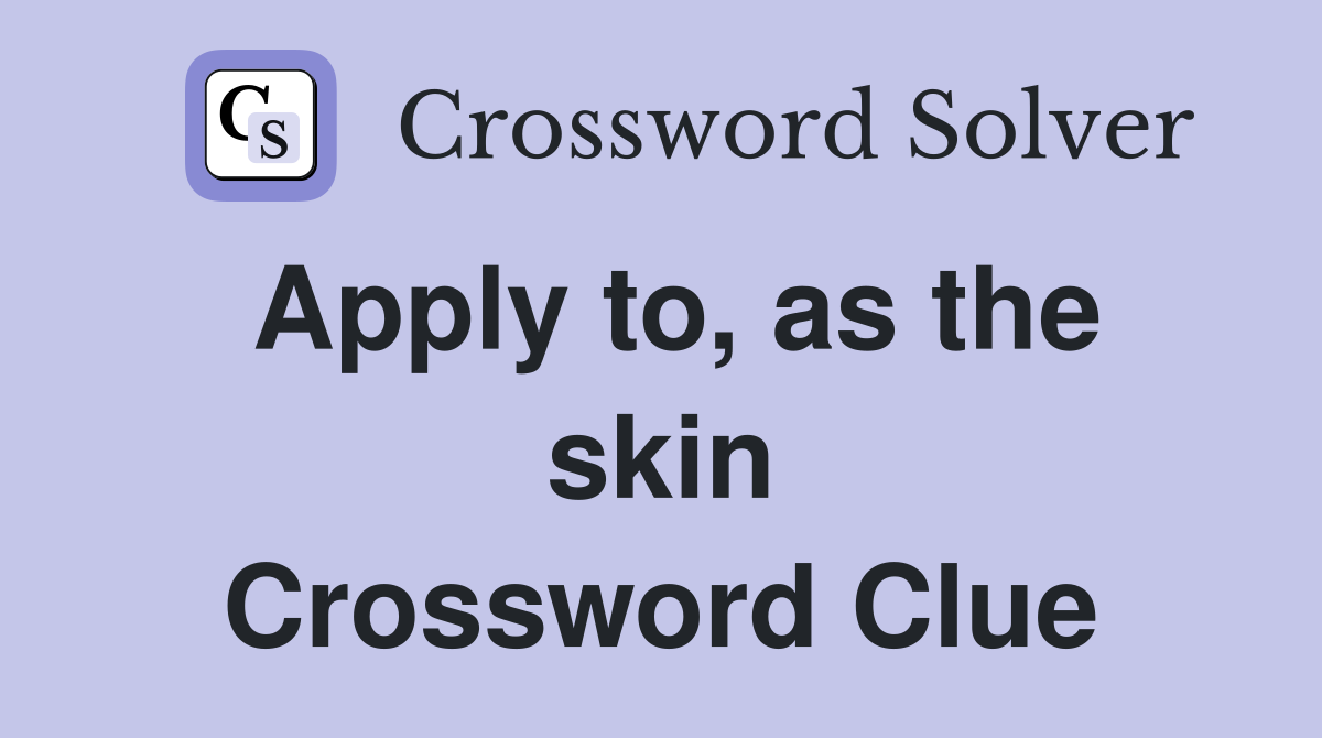 Apply to as the skin Crossword Clue Answers Crossword Solver