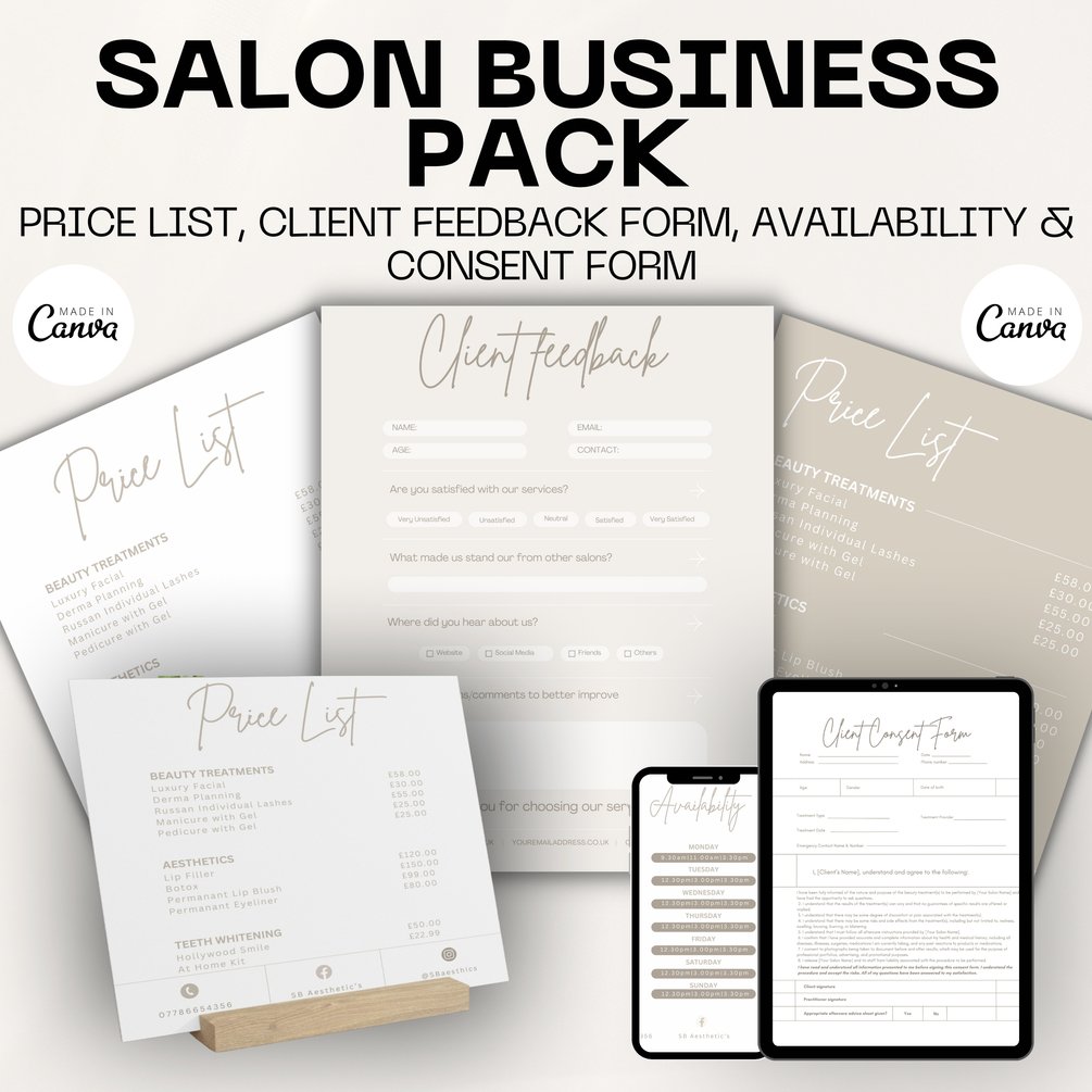 Editable Salon/Shop Bumper Business Pack Price List Client Feedback