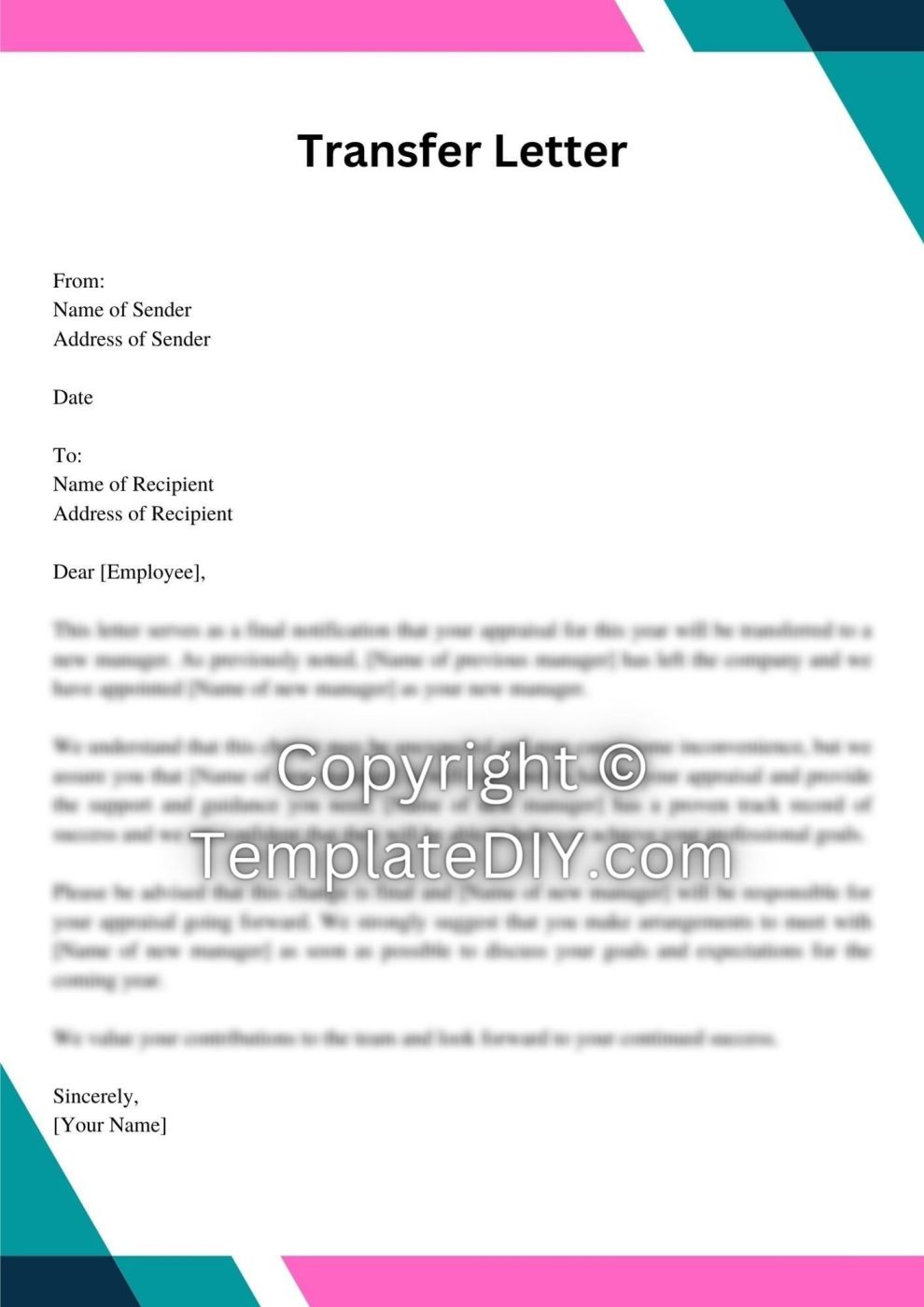 Appraisal Transfer Letter Template 5 Free Word PDF Format Download